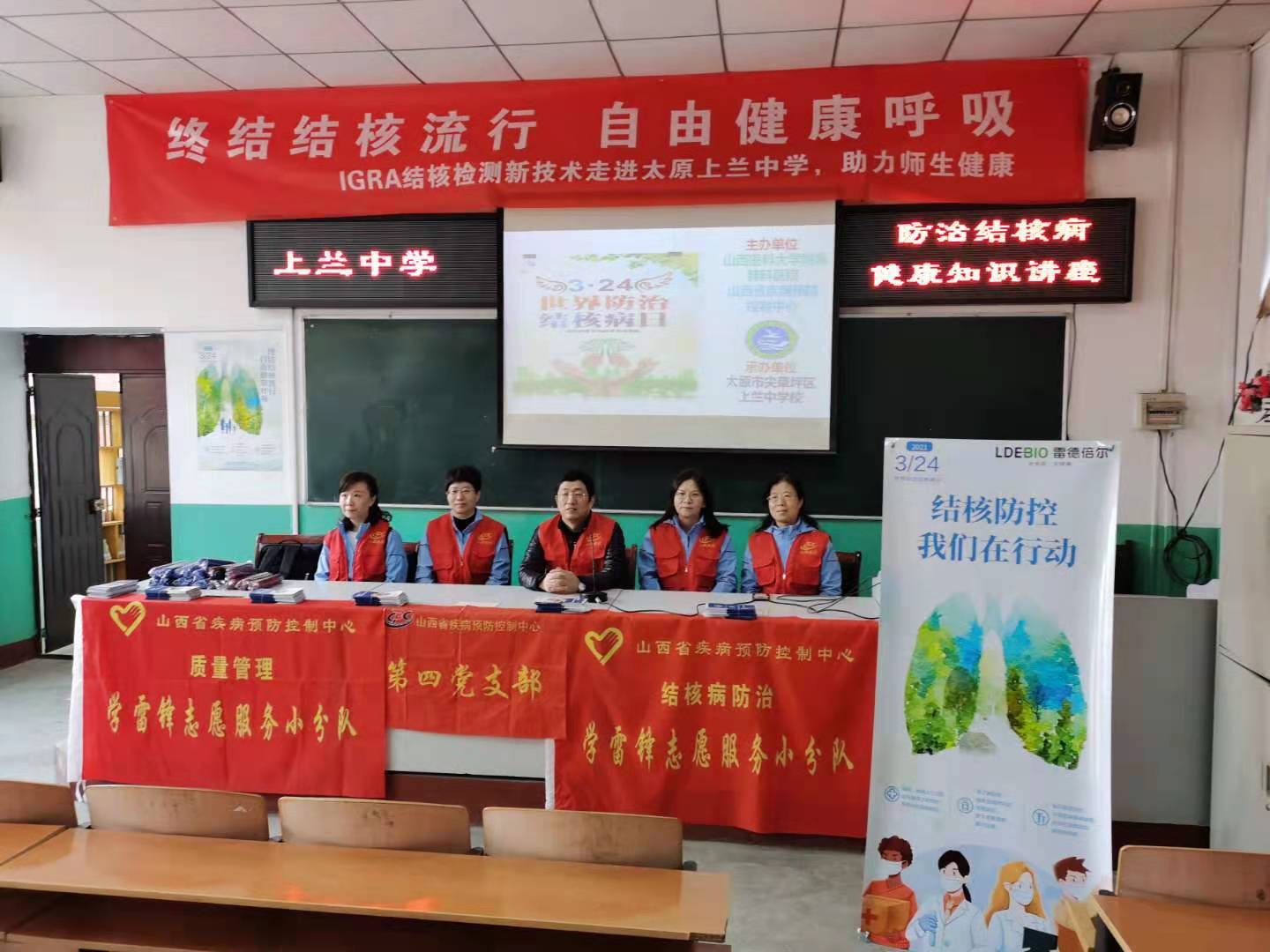 3月24日是第26個"世界防治結(jié)核病日",今年WHO的主題是“分秒必爭,終止結(jié)核”,我國的宣傳主題是“終結(jié)結(jié)核流行,自由健康呼吸”。由山西省疾病預(yù)防控制中心、山西醫(yī)科大學(xué)附屬肺科醫(yī)院聯(lián)合舉辦324結(jié)核防控知識進校園主題活動,本次活動分別在中北大學(xué)和太原市上蘭中學(xué)進行。本次活動旨在貫徹落實《中國校園結(jié)核病防控指南(2020年版)》,提高師生健康素養(yǎng)和防病意識,普及結(jié)核病防控知識和技能,改善行為習慣,增強校園群體防控能力,營造全校師生參與結(jié)核防控的良好氛圍。
