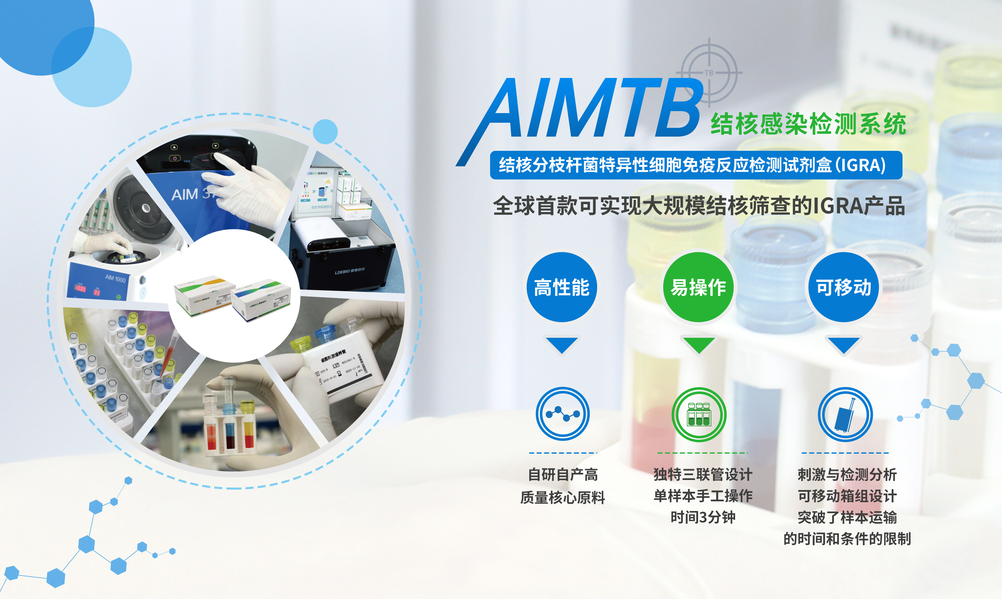 基于全免疫體外診斷核心技術(shù)平臺(tái),雷德倍爾創(chuàng)新研發(fā)的AIMTB結(jié)核感染檢測系統(tǒng)已經(jīng)于2019年獲得國家藥監(jiān)局注冊批準(zhǔn)上市。AIMTB基于IGRA技術(shù),實(shí)驗(yàn)使用的結(jié)核分枝桿菌基因中含有特異性的RD1區(qū)域的E6和C10兩個(gè)強(qiáng)免疫原性抗原,檢測結(jié)果具有相當(dāng)高的敏感性和特異性。