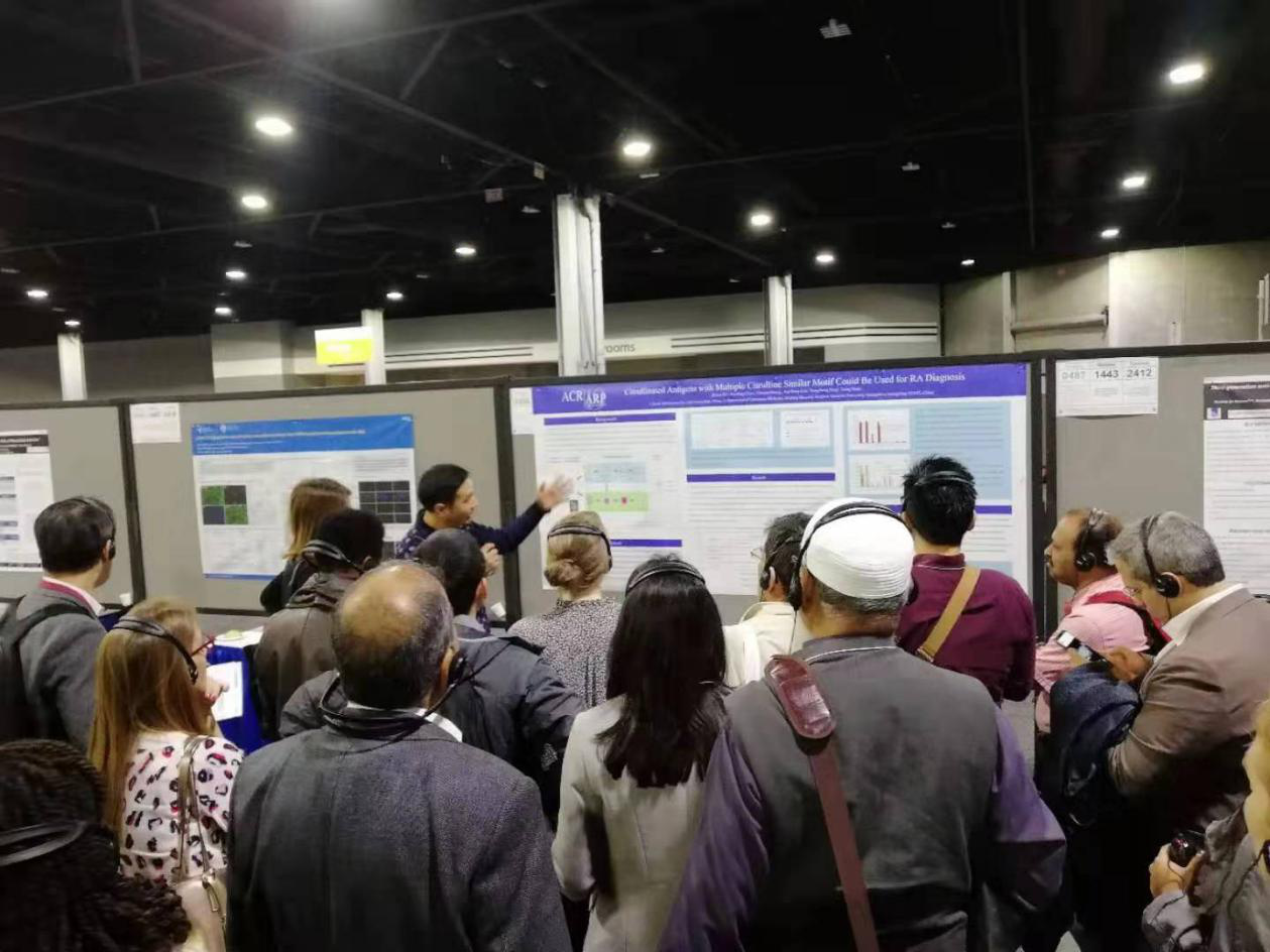 美國風(fēng)濕病學(xué)會(ACR)是一個致力于改善風(fēng)濕病患者的護(hù)理和促進(jìn)風(fēng)濕病??瓢l(fā)展的專業(yè)會員組織。ACR成立于1934年,是一個非營利性、全球醫(yī)學(xué)協(xié)會,為全球超過9600名醫(yī)生、衛(wèi)生專業(yè)人員和科學(xué)家服務(wù)。ACR通過提供有意義的教育、研究、宣傳和實踐支持來促進(jìn)其成員發(fā)展。我公司楊博士攜RA_CP(類風(fēng)濕性關(guān)節(jié)炎瓜氨酸化蛋白檢測試劑盒)首亮此次會議。