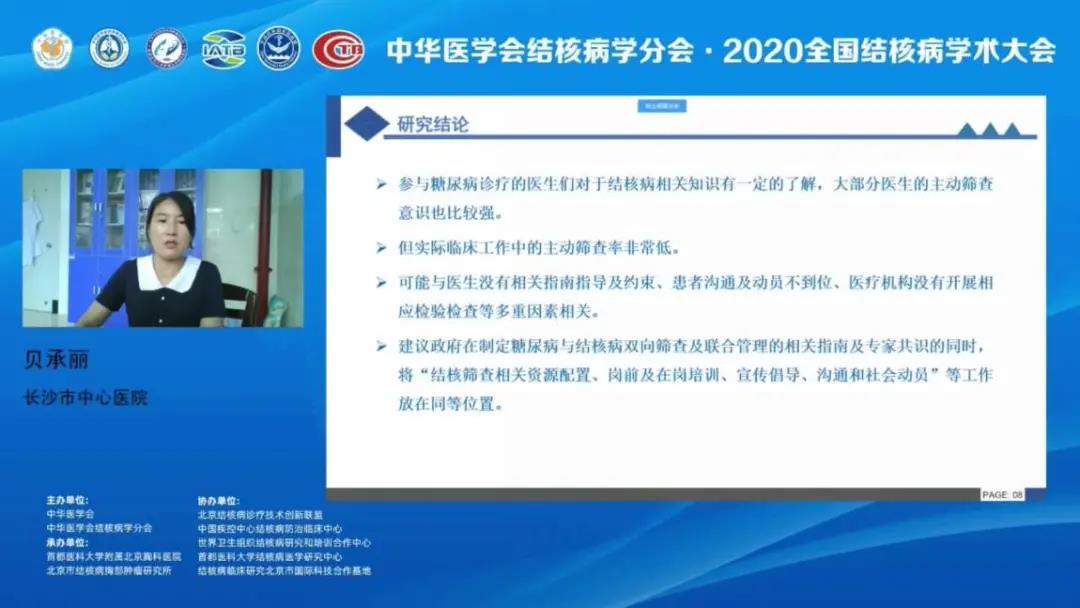 長沙市中心醫(yī)院貝承麗就如何在糖尿病患者中篩查結(jié)核病的專題作了報(bào)告,她指出,肺結(jié)核和糖尿病均是發(fā)病率高,嚴(yán)重威脅人類健康及生命的全球性疾病。2019年1月,WHO提出了雙向篩查的必要性,但目前在我國國情下如何進(jìn)行雙向篩查仍存在問題,應(yīng)基于國情下制定初步防治活動計(jì)劃。